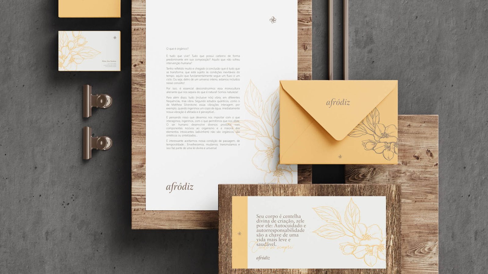 A Afrôdiz busca ser referência como uma marca de saberes essenciais à uma vida saudável e equilibrada, construindo a imagem personificada de uma senhora preta, afro-brasileira, sábia, experiente e acolhedora. Com base nessa premissa, a Afrôdiz, a marca aborda em uma proposta tipográfica para transcender a referência de sabedoria e experiência, juntamente, com intervenções nas letras que remetem ao acolhimento e cuidado.