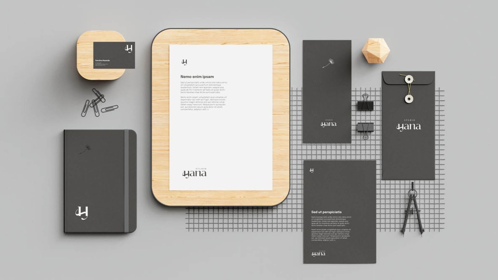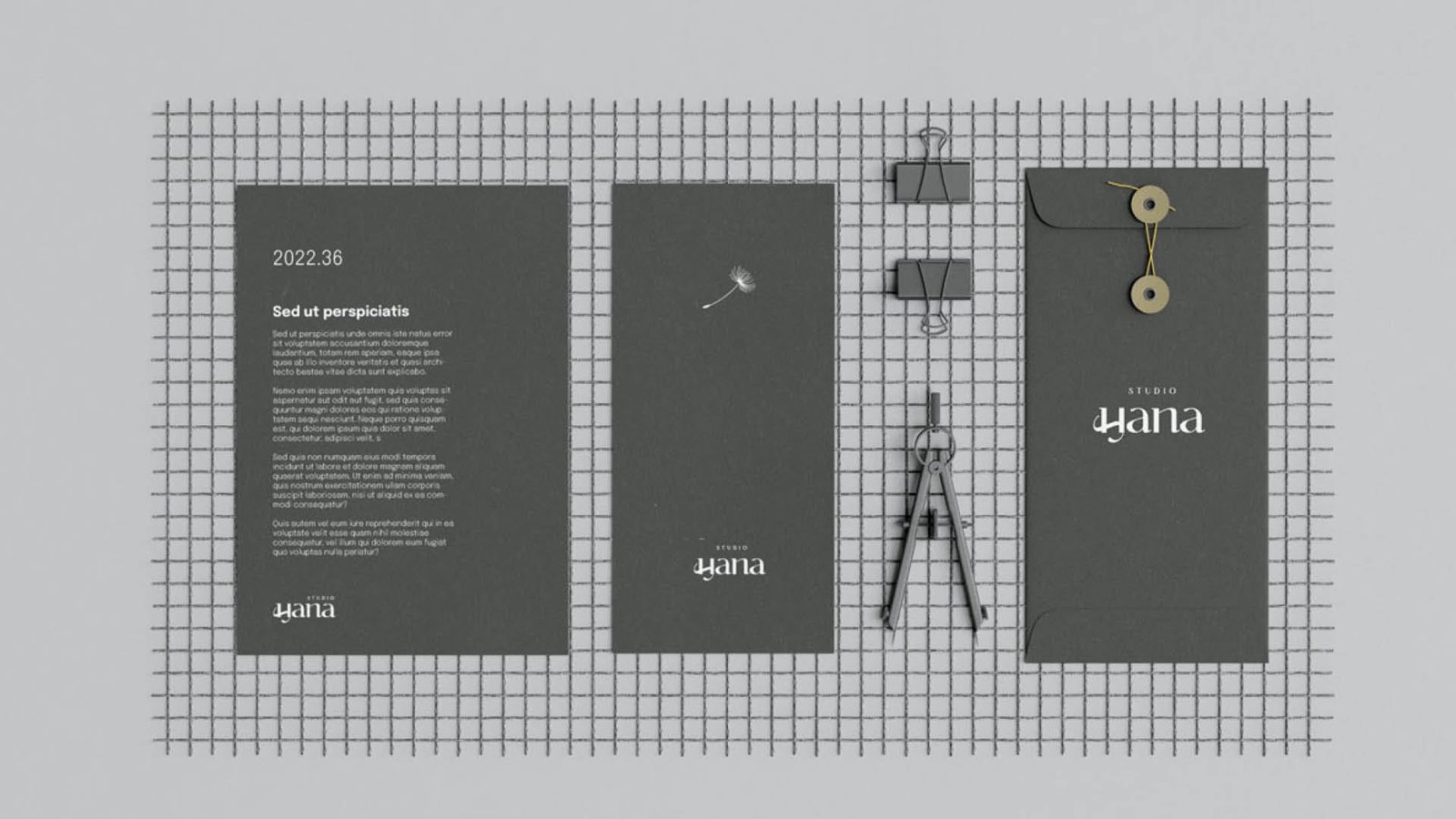 A marca Studio Hana é simples e objetiva, conferida ao minimalismo, tem identificação fácil e memorável.
